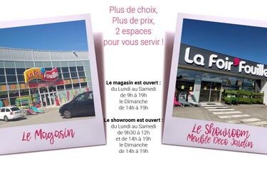 Votre magasin La Foir’Fouille de Bourg-lès-Valence, situé sur la RN7 au lieu-dit Le Geai, vous propose un large choix d’articles de décoration, rangements, textile maison, loisirs créatifs et univers festif à prix malins.